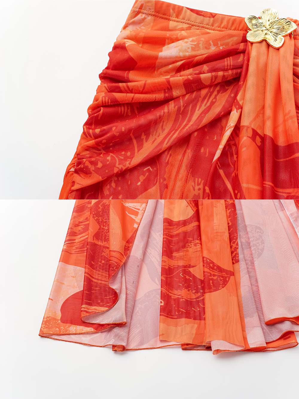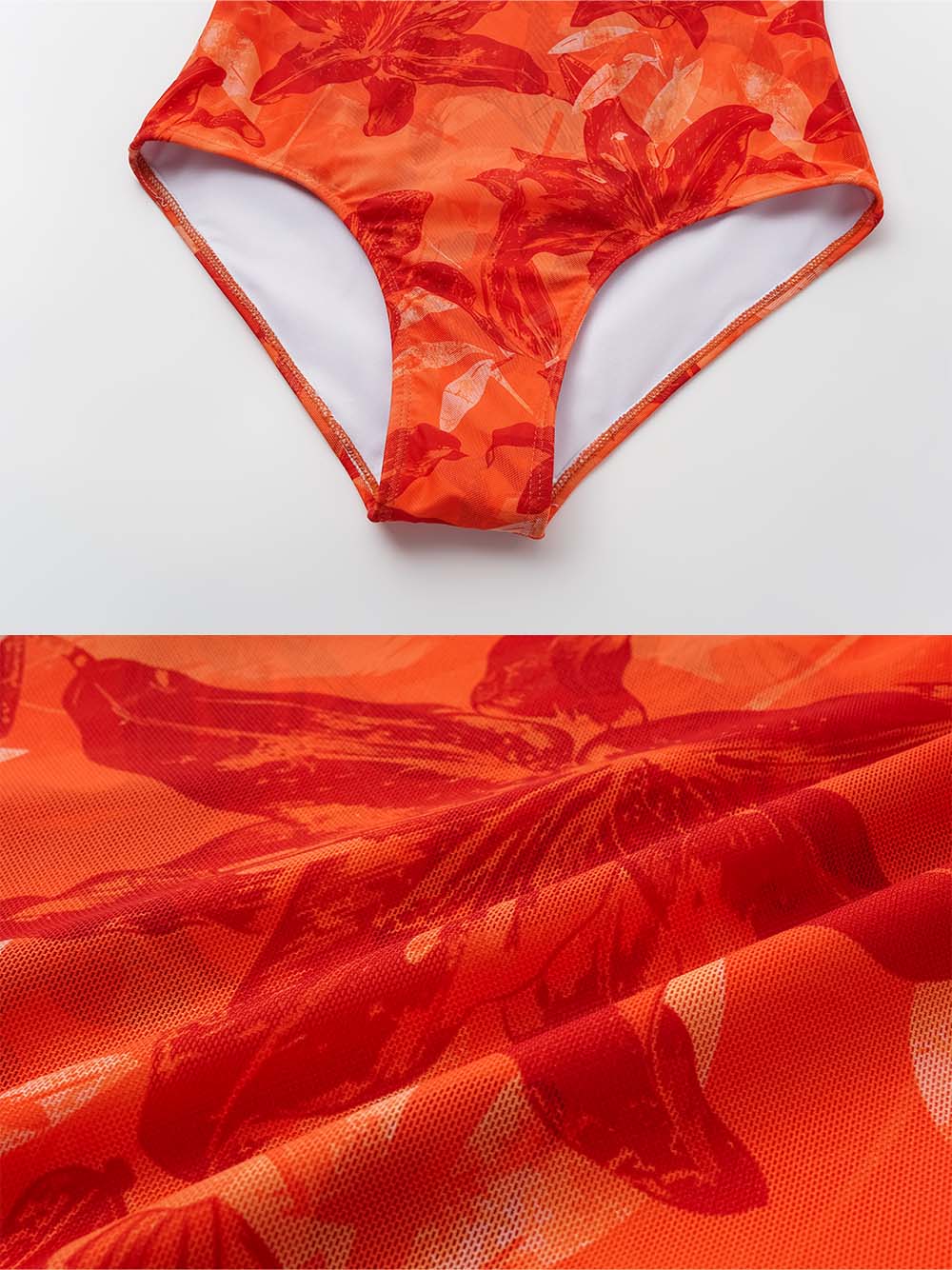 Orange Lily Print One Piece Swimsuit and Sarong (Multiple ways to wear)